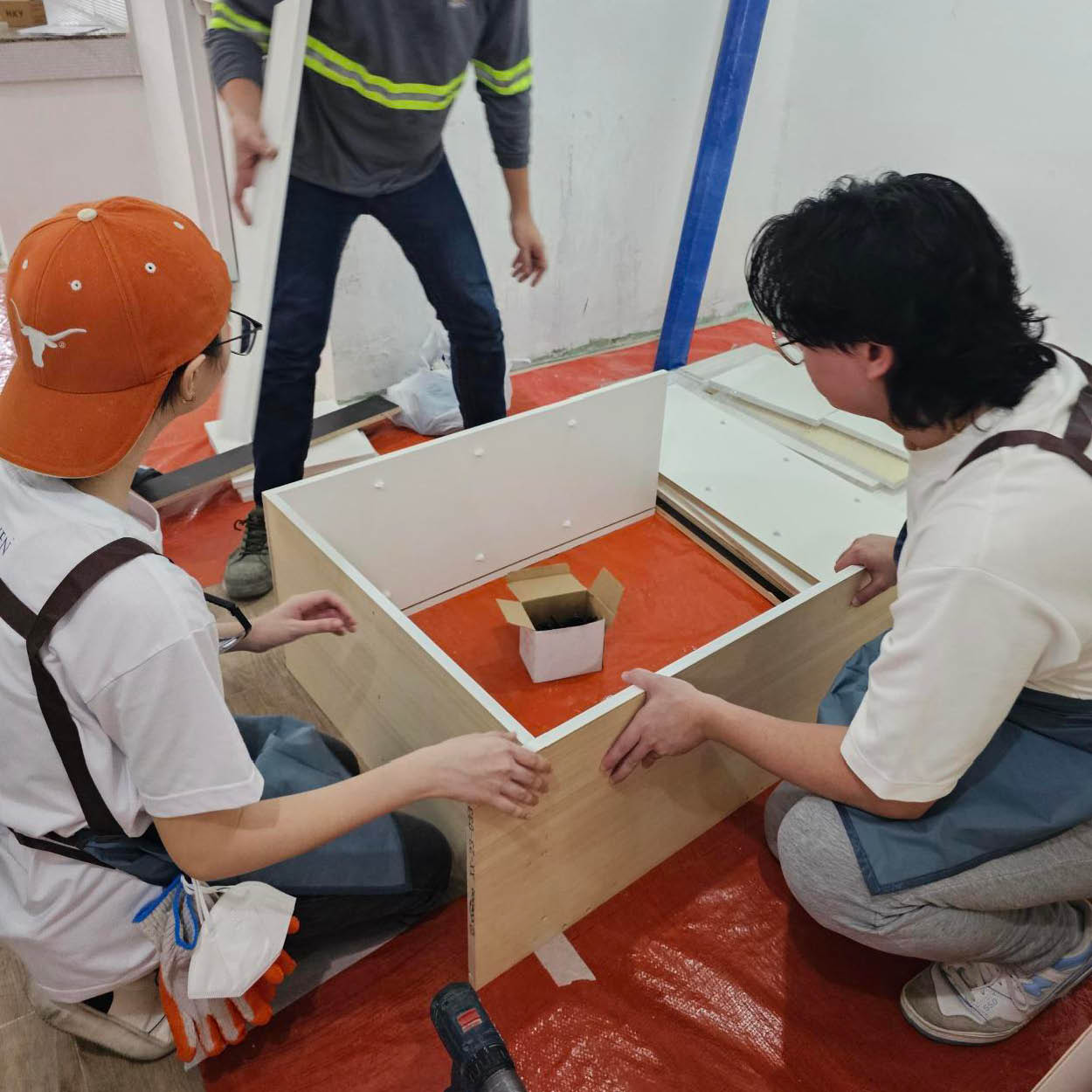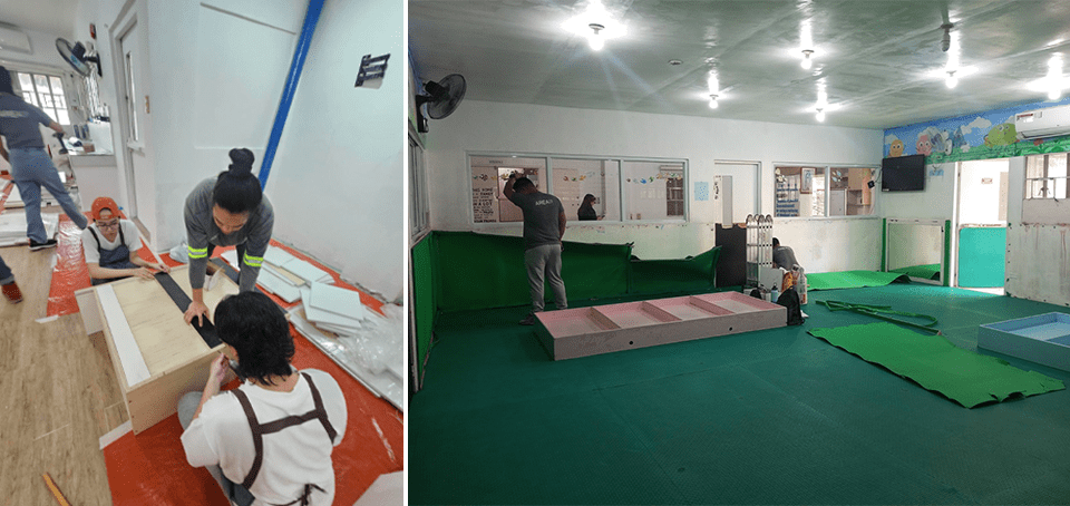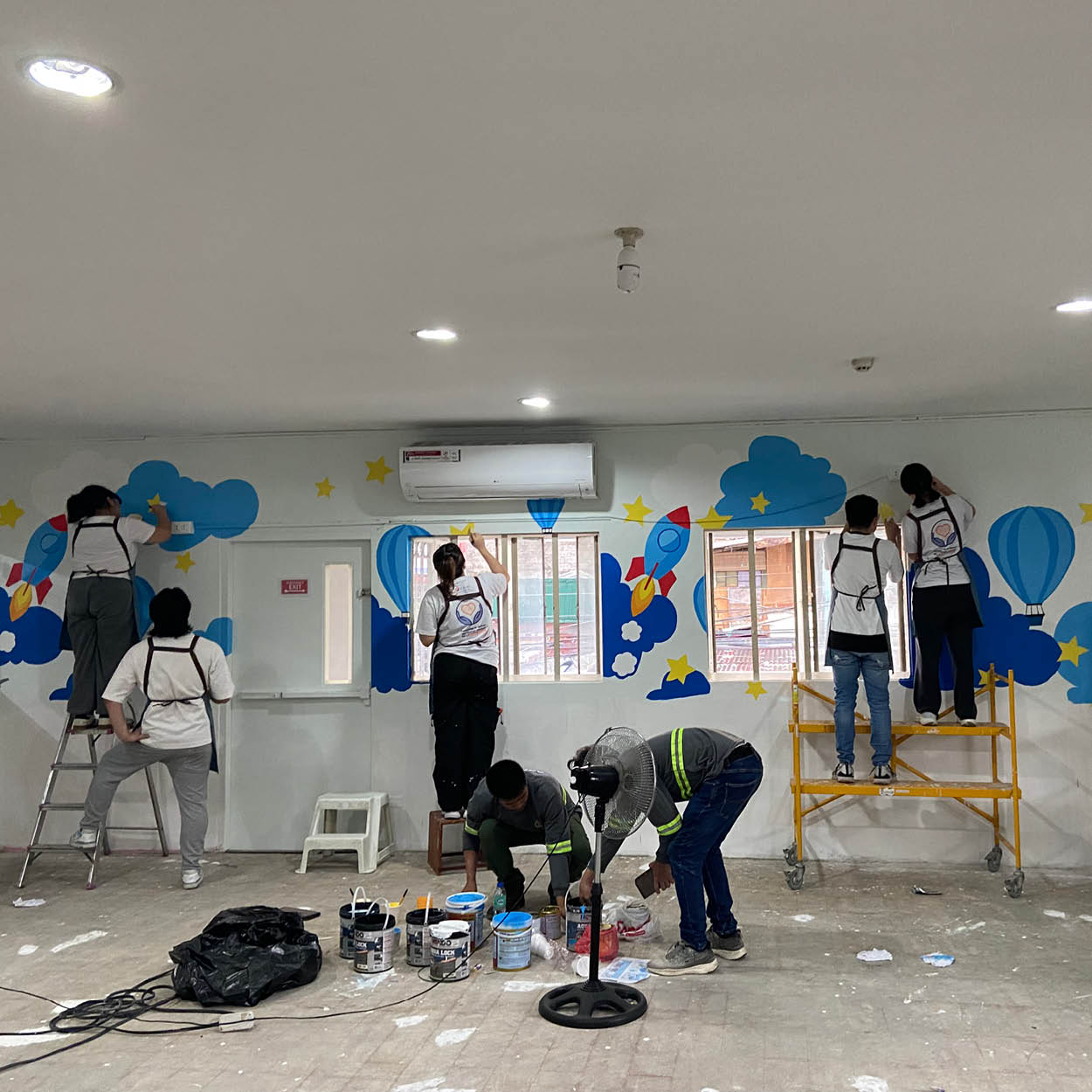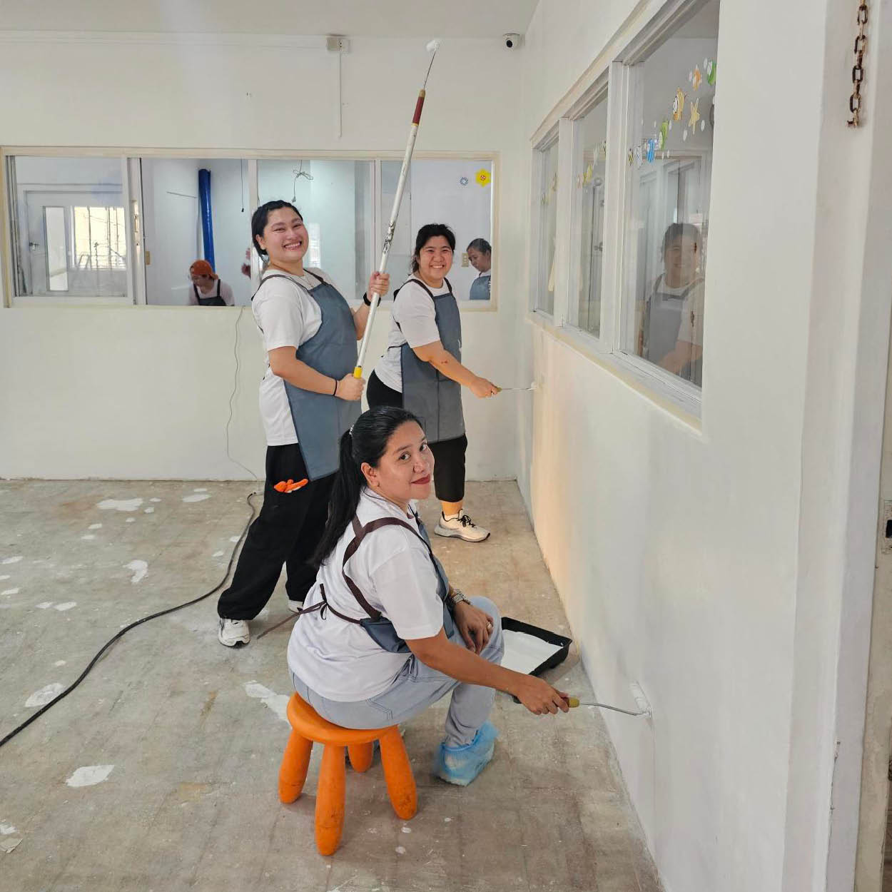 During our visit, we painted and added vibrant murals to brighten the nurseries, cleaned and organised the living spaces to create a more welcoming environment, and repaired and refurbished cabinets to improve functionality and comfort throughout the shelter.